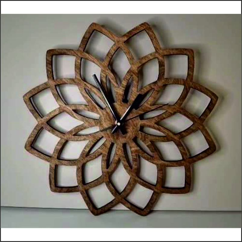Laikrodis Lotoso žiedas – tai graži, elegantiška interjero detalė. Pagamintas iš 6 mm medienos. Būtent šis padengtas rudu baldiniu medienos aliejumi, tačiau galime dažyti spalva tokia, kokios jūs norite. Laikrodis Lotoso žiedas yra 30 cm skersmens. Rodyklės derinamos pagal laikrodžio spalvą (juodos arba sidabrinės). Dedasi AA tipo baterija (į komplektaciją neįeina). Norint didesnio dydžio kreipkitės telefonu arba el.paštu. Norimą spalvą įrašykite į komentarų laukelį.